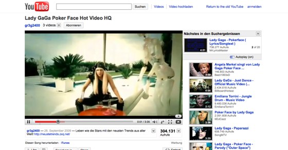 Was mir nach wie vor fehlt, ist eine einfache Funktion, um die Playlist anzulegen und zu verändern. Denn Jukeboxhören schön und gut, aber noch sehe ich keinen Vorteil darin, mir den jüngsten Felix-Magath-Ausraster anzusehen und danach das gleiche Video von einem anderen Nutzer nochmal.