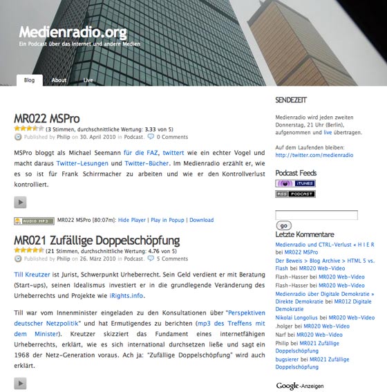 Best of Blogs geht in die nächste Runde. In unserer nun regelmäßig am Sonntag erscheinenden Reihe, stellen wir in lockerer Folge einige unserer Lieblingsblogs vor. Heute möchte ich euch Medienradio.org ans Herz legen.