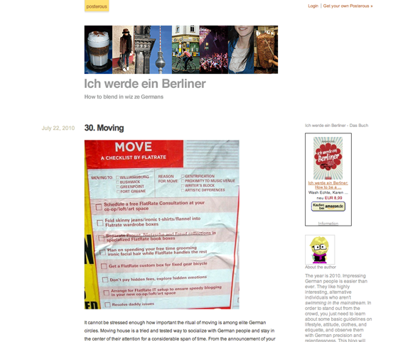 Letzten Sonntag wurde die USA erklärt, diese Woche läuft es umgekehrt: Ein furchtloser “Auslander” hat sich ins Berliner Getümmel gestürzt und bloggt auf “Ich werde ein Berliner” darüber mit liebevollem Sarkasmus und beißender Ironie. Ich habe länger überlegt, ob ich ein englischsprachiges Blog, in dem außerdem noch sehr selten gepostet wird, hier mit aufnehmen soll. Doch, ist nötig.