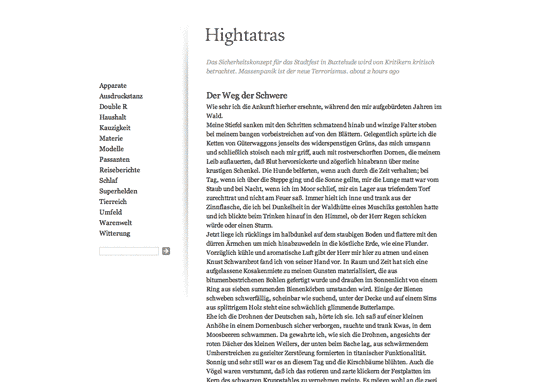 Hightatras schreibt, als wolle er gedruckt und gebunden werden. Die langen, eher selten erscheinenden Texte sind nicht immer leicht am Bildschirm zu lesen – ein iPad täte Not und ich ignoriere seine Posts meistens im Reader und schaue gerne abends im Bett per Smartphone vorbei. Und nach dem Lesern von zwei oder drei dieser Texte frage ich mich auch: Warum wird das nicht gedruckt und gebunden?