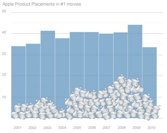 Ob Apple Product Placement in Kinofilmen so besonders forciert oder aber Filmemacher einfach nur gerne auf die stylischen Apple-Produkte zurückgreifen, ist nicht geklärt. Sicher ist nur: In den Nullerjahren war keine Marke in so vielen Nummer-1-Blockbustern zu sehen.