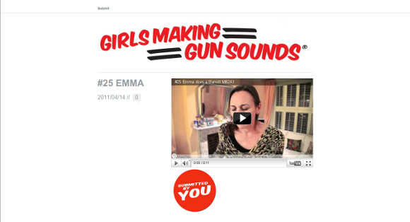 Muss am Wetter liegen, mein neuerliches Faible für Tumblr-Blogs und verwandte Scrollgelegenheiten, die alle ziemlich gaga aber sehr unterhaltsam sind. Egal ob Ansager aus der Fernsehantike, Kim Jong Il Dinge betrachtend, oder jetzt neu: Mädchen, die Pistolenschüsse nachmachen. Bei den Kurzvideos steht immer auch bei, welches Waffenmodell die jeweilige Dame imitiert – von der Barret bis zum Miniweltkrieg. Pschiou! Pschiou! Pschiou!