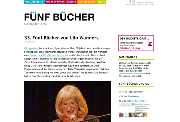 Als die ersten Verlage auf die Idee kamen, Papierbücher zurückzunehmen und sie durch digitale Versionen für e-Book-Reader zu ersetzen, hatten Melanie und Philippe vom Blog mit Speck den Gedanken, dass es garantiert Bücher geben wird, die wir niemals aus der Hand geben werden – und fragen seitdem Menschen unterschiedlicher Couleur von prominent bis unbekannt nach ihren fünf wichtigsten Büchern.